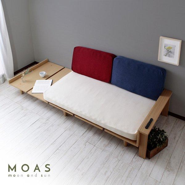 ■ソファベッド・デイベッド / モアス【MOAS】-moon and sun-背もたれとしてクッションを壁に立てかけるとソファ・サイドテーブルとして使えるソファベッド・デイベッドです。