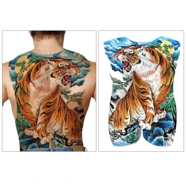 背中に貼れる大きなサイズの人気の虎をモチーフにした水で貼るフェイクタトゥ—ステッカー。