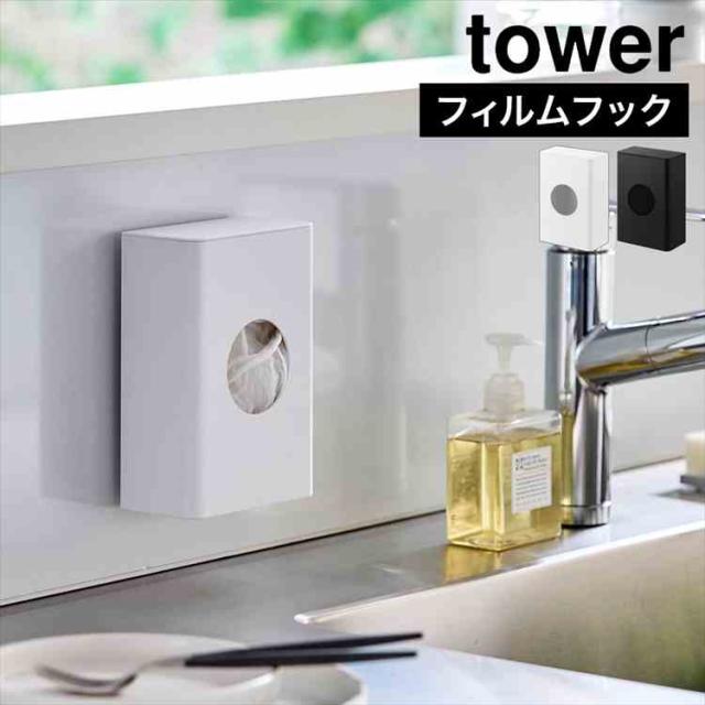 フィルムフック水切りネットホルダー 山崎実業 タワー tower 10466 10467 ホワイト ブラック 公式 水切りネット 収納 キッチン 壁収納 水切りネットケース ポリ袋ホルダー 収納 浮かせる収納 賃貸 キッチンパネル 三角コーナー ネット ネット 補充 ゴム手袋ケース