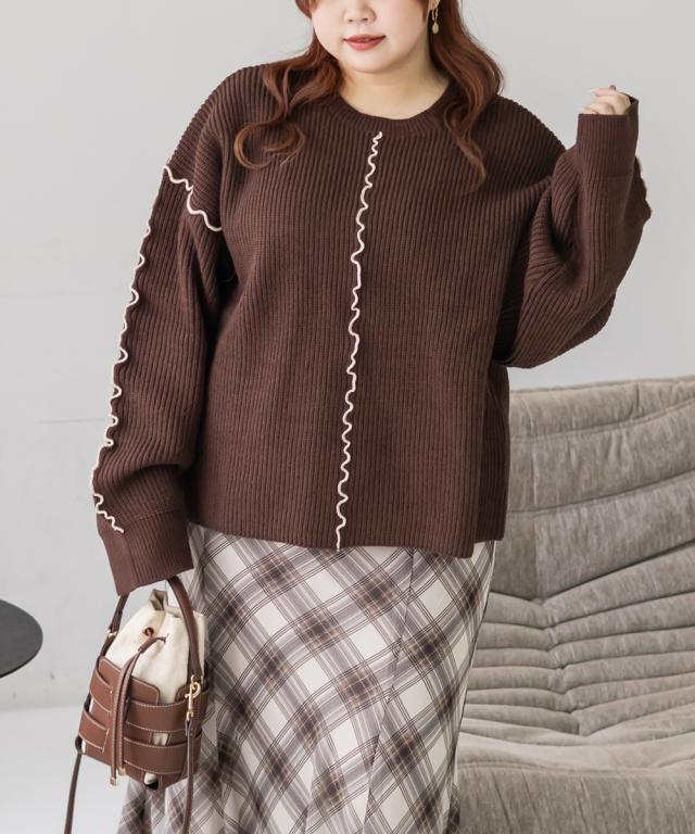 大きいサイズ/レディース/3L/4L/配色メローニットプルオーバー