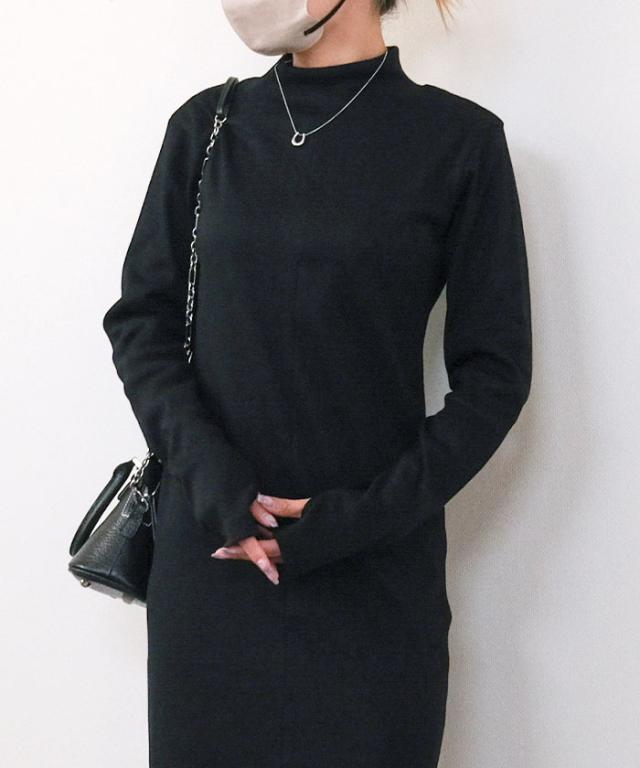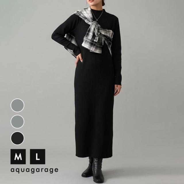 フィンガースリーブプチハイリブワンピース 春 秋 冬 アクアガレージ aquagarage