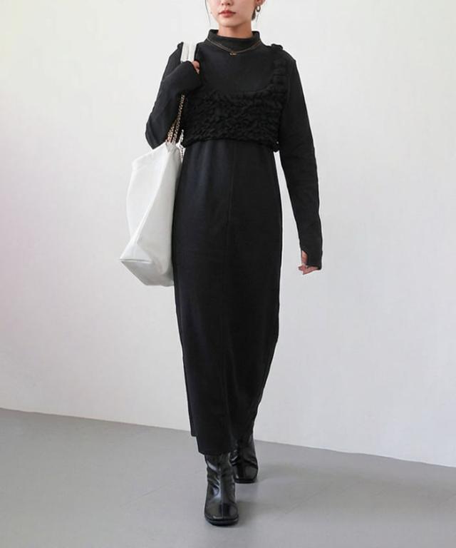 首元から裾までスッと流れるようにデザインされているため、1枚でコーデが完成し、デイリーにもお出かけにも使える万能さを備えています。