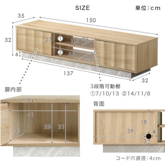 【正午〜P5%還元】 テレビ台 150cm 収納 ローボード テレビボード テレビラック TV台 TVボード ロータイプ リビング モルタル 石目調 木目調 木製 小さい コンパクト 150センチ 32インチ 40インチ 50インチ 北欧 モダン おしゃれ