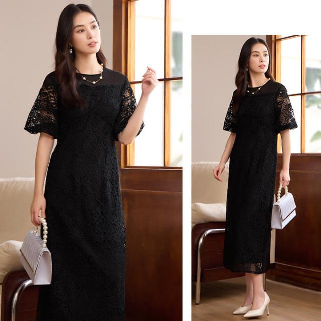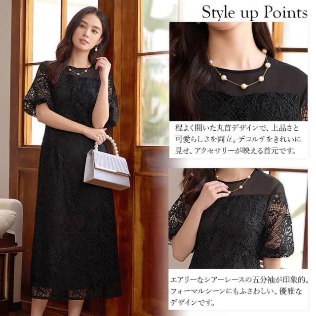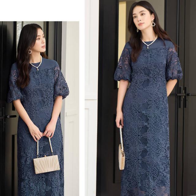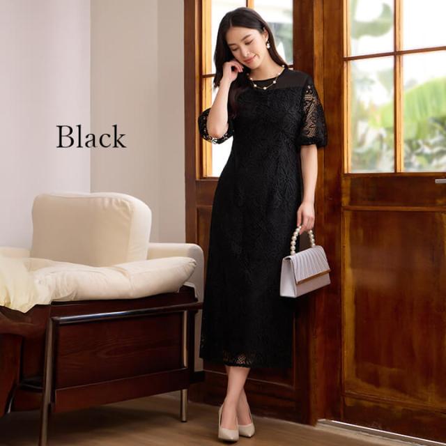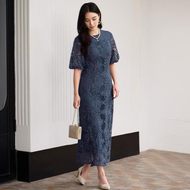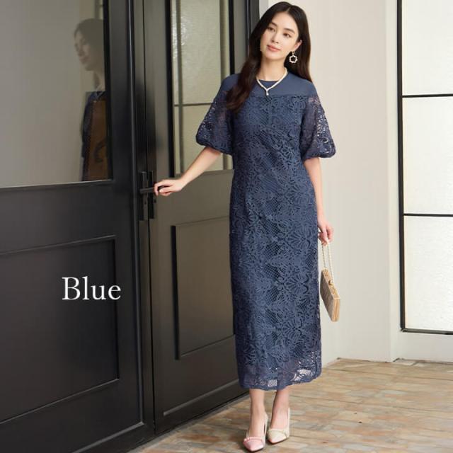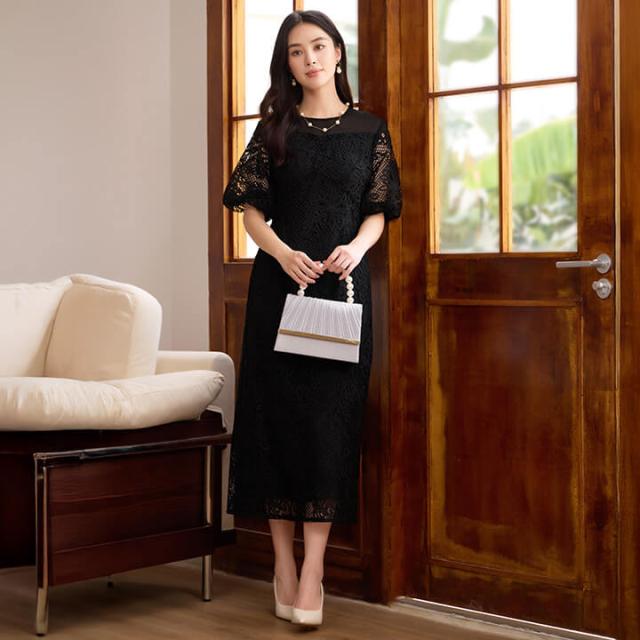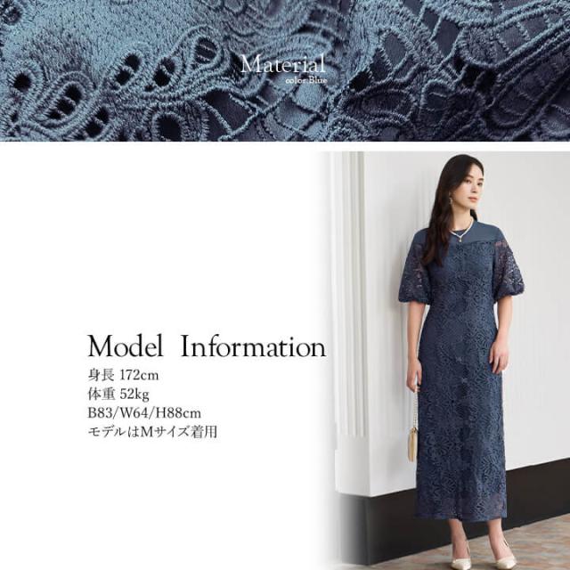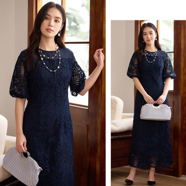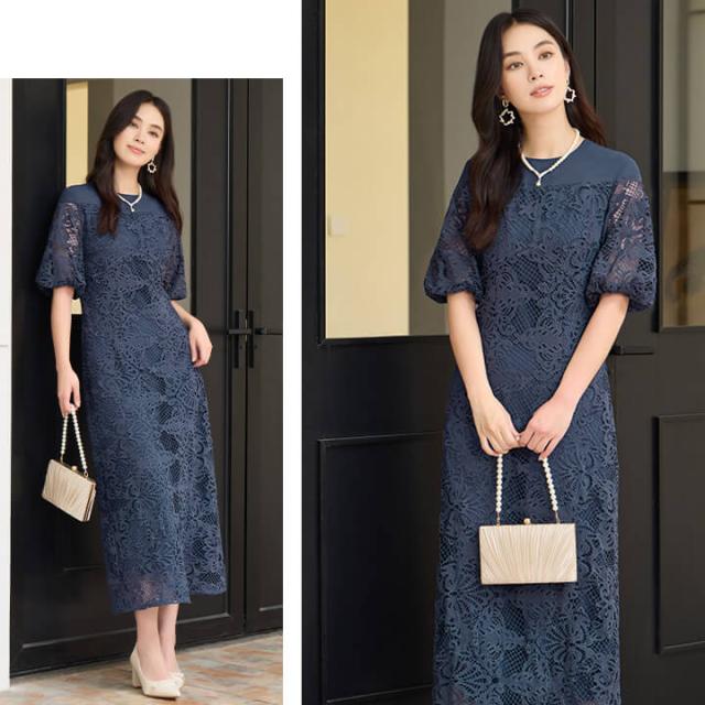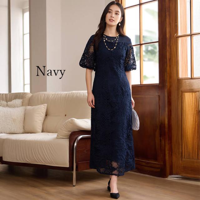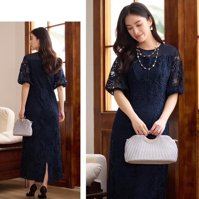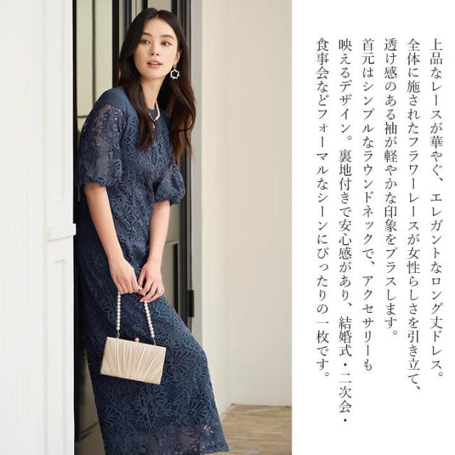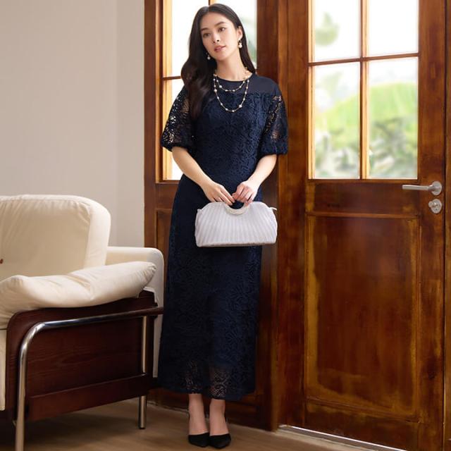 上品なレースが華やぐ、エレガントなロング丈ドレス。