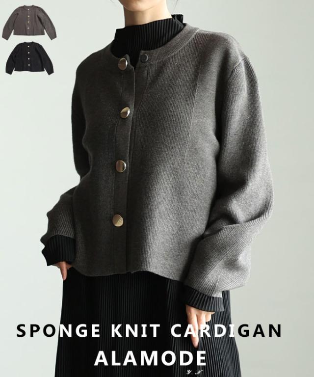 冬新作 着るだけで美人見えなスポンジニットカーディガン レディース ファッション トップス カーディガン ニット セーター 黒 冬服 大人可愛い 20代 30代 40代 レディースファッション カジュアル 体型カバー おしゃれ きれいめ ママ アラモード alamode mode-10125