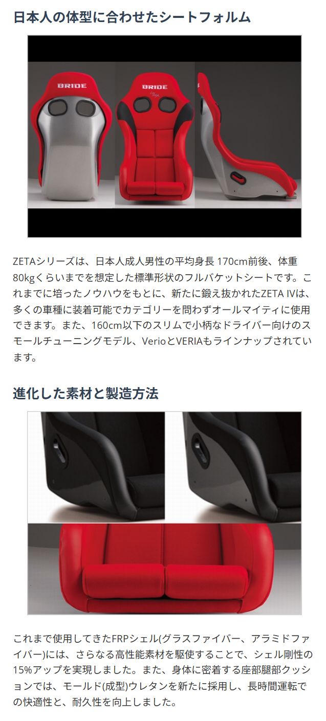 | 商品名 | BRIDE ZETA IV FRP製シルバーシェル ブラック フルバケットシート |