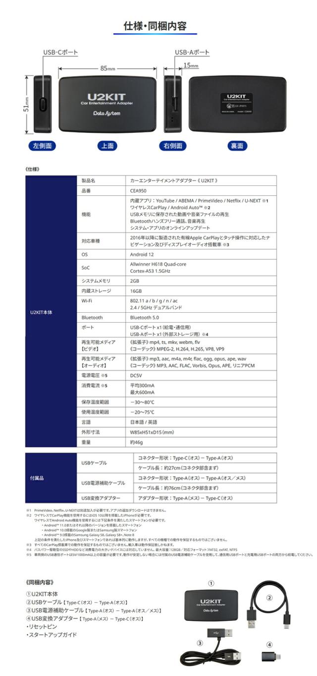 【在庫あり】DataSystem データシステム カーエンターテイメントアダプターU2KIT CEA950 送料無料(一部地域除く)
