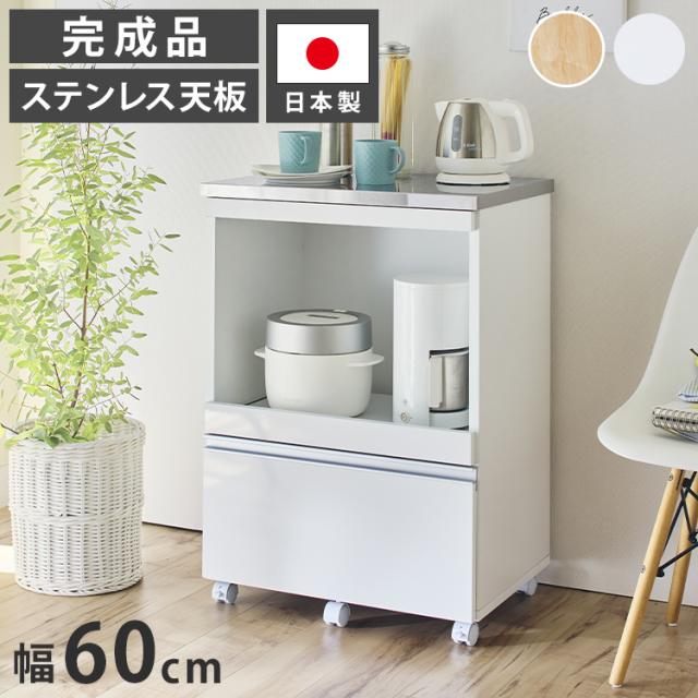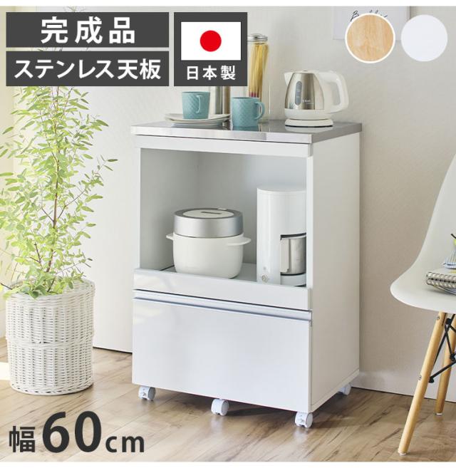 大型電子レンジが入る ステンレス キッチンカウンター 4段 幅60 食器棚 完成品 引き出し ステンレス天板 コンパクト 家電収納 レンジ台 キッチン収納 キッチンラック カップボード キャスター【送料無料】
