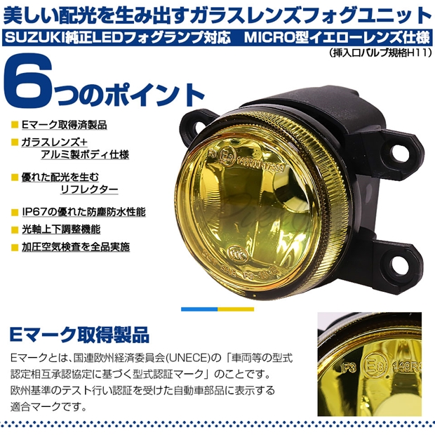 高い質感と耐久性を実現するEマーク認証イエローガラスレンズフォグユニット