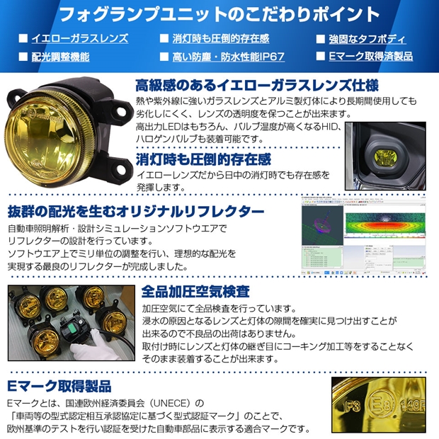 高い質感と耐久性を実現するEマーク認証イエローガラスレンズフォグユニット