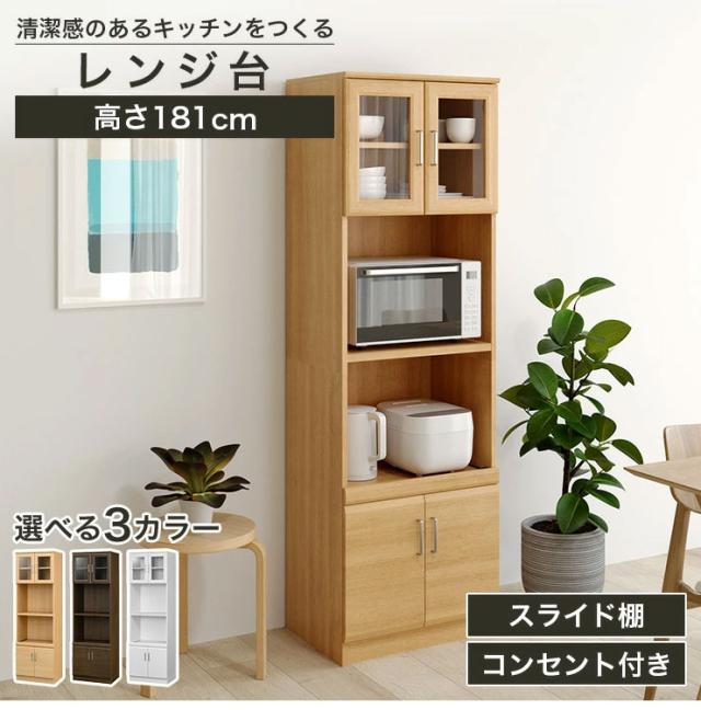 レンジ台 食器棚 幅57cm 高さ181cm ホワイト 白 スライド棚 コンセント付 キッチン 家電 収納 シンプル キッチン収納 ベアルモ BRM-1855SLWH 白井産業(代引不可)【送料無料】