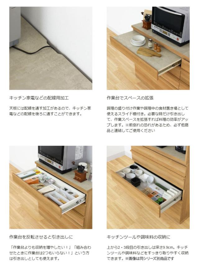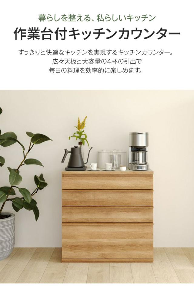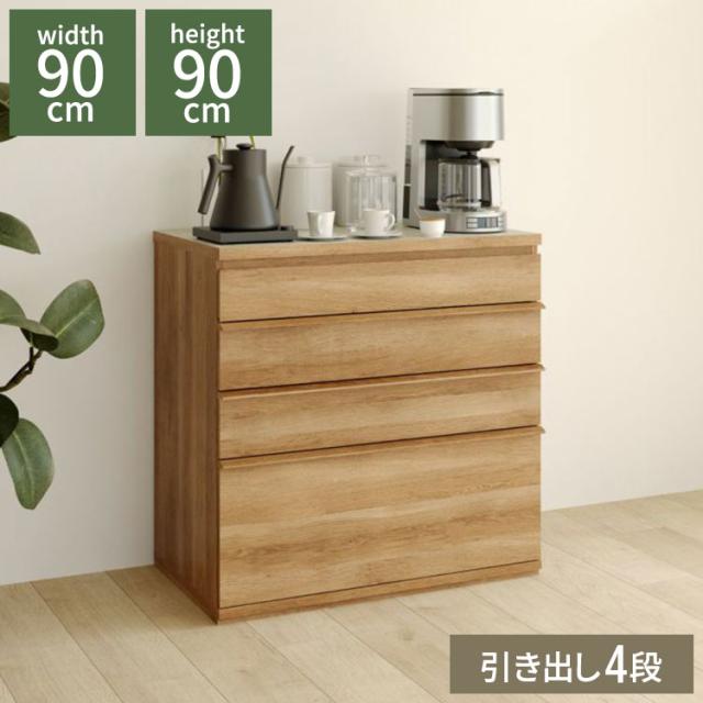 キッチンカウンター レンジ台 食器棚 幅90cm 高さ90cm ナチュラルブラウン 引出4段 メラミン天板 キッチン 家電 収納 コモピア CMA-9090HANA(代引不可)【送料無料】