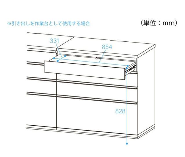 キッチンカウンター/幅90cm スライド棚付き