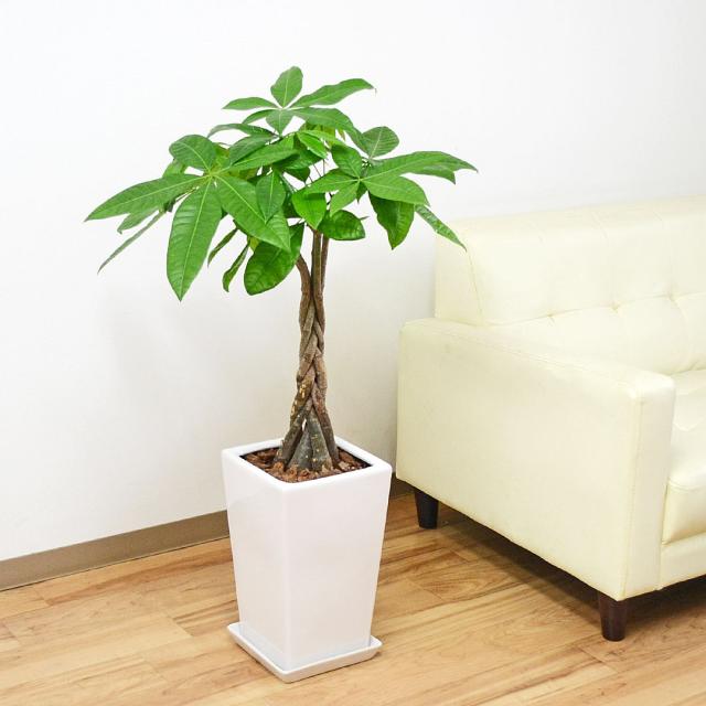 観葉植物 パキラ 発財樹 陶器鉢 スクエア 7号 ホワイト 白 おしゃれ 本物 大型 インテリア 室内 送料無料
