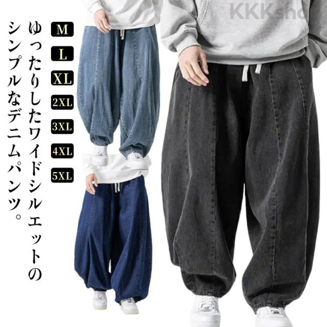パンツ サルエルパンツ デニムパンツ 秋 メンズ 春 イージーパンツ 夏 デニム ワイドパンツ ゆったり ルーズ ワイド ジーパン ジーンズ 袴パンツ デニムサルエル Gパン 大きいサイズ ポケット付き デニム ブルー ストリート カジュアル バルーンパンツ