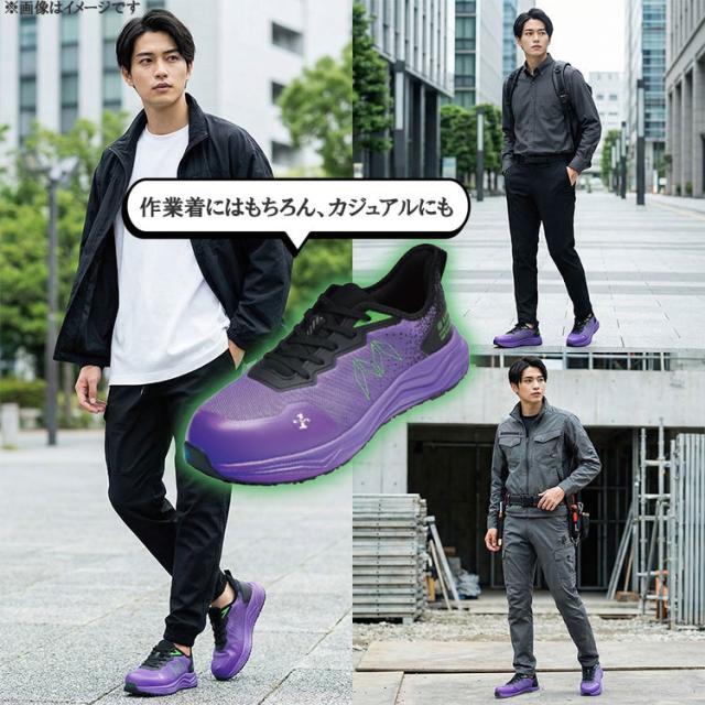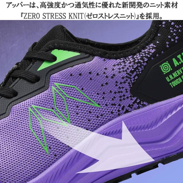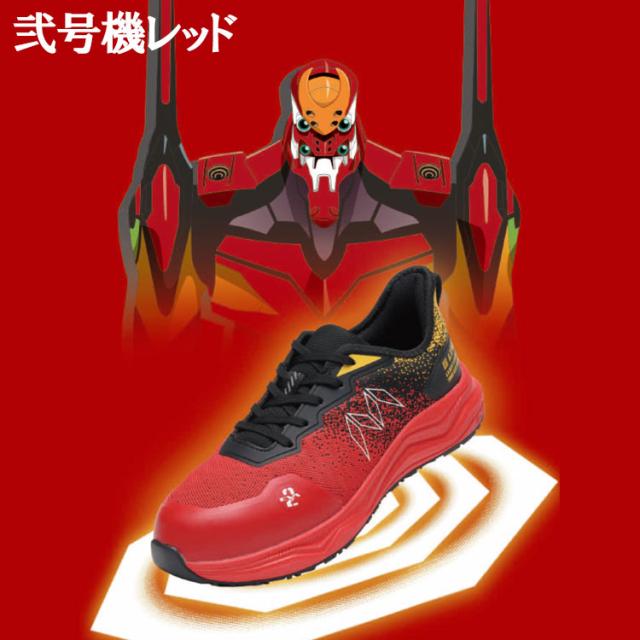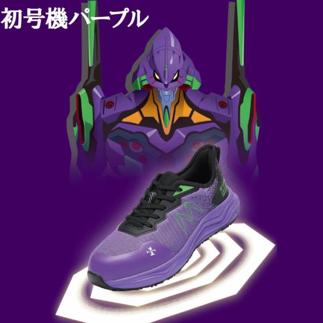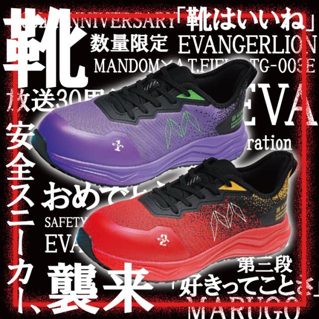【数量限定】 エヴァンゲリオン 丸五 コラボ 放送30周年モデル 安全靴 スニーカー メンズ ひも式 軽量 樹脂先芯 初号機 弐号機 パープル レッド TG-003E