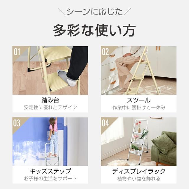脚立 3段 踏み台 折りたたみ式 3段踏み台 ディスプレイラック 耐荷重約150kg 滑りにくい 簡単収納可能 軽量 持ち運びやすい 安定感 お子様 大人 日常生活 sg236