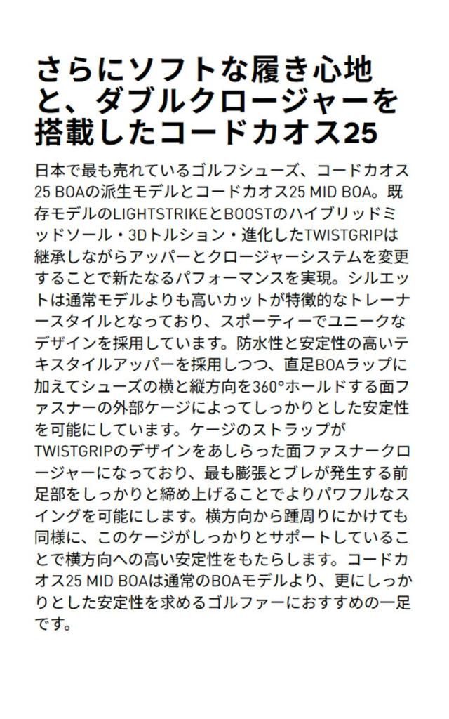 さらにソフトな履き心地と、ダブルクロージャーを搭載したコードカオス25