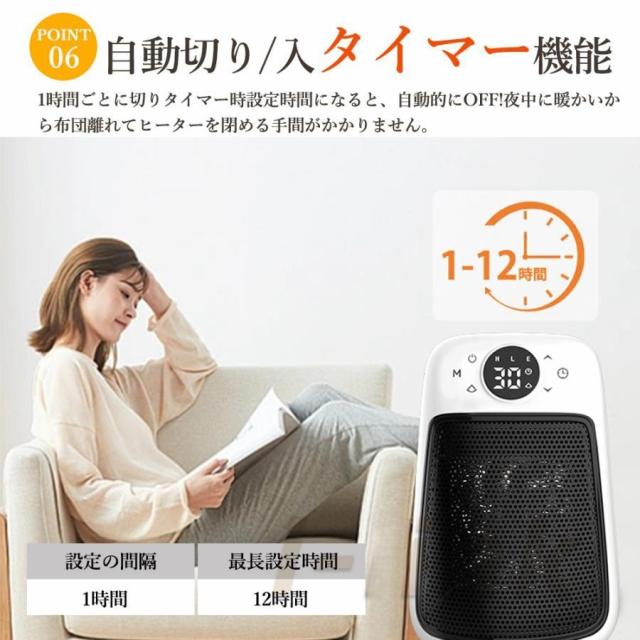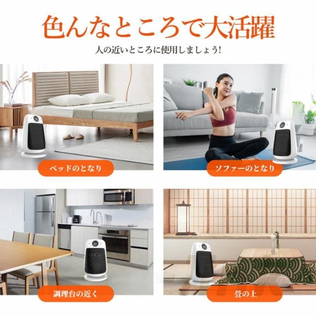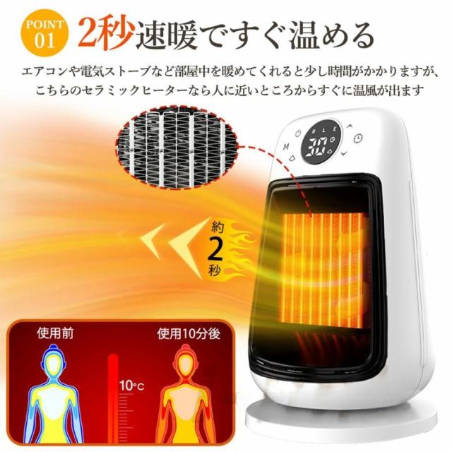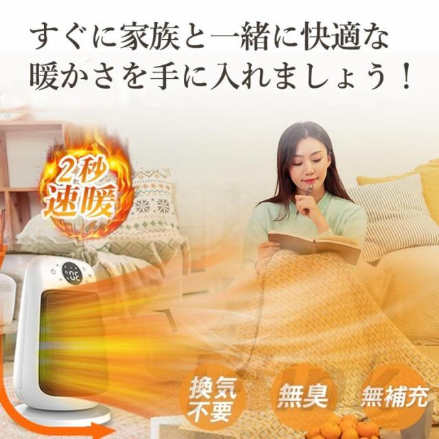 速暖性に優れたセラミックヒーター電気式なので、スイッチを入れれば2秒で温風が出ます。寒い日に立ち上がりを待たずに暖まることができます。トイレ、脱衣所、お風呂場などの狭いところに置けば、すぐに体を暖めてくれます。帰宅が遅くなり冷えきった部屋や、寒くて起きられない朝に大活躍。冷え性のかたにお勧め!