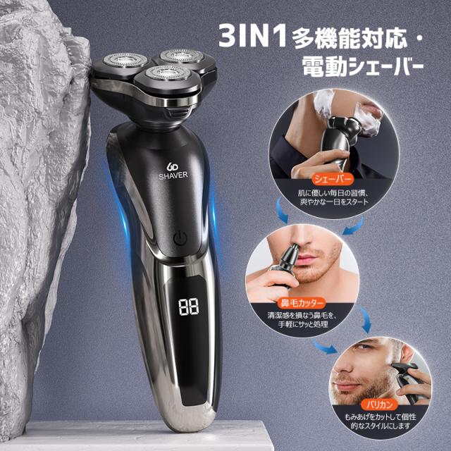 髭剃り 電気シェーバー メンズ ひげそり 電動ひげそり 回転式 LCD電池残量表示 IPX7防水 type-c充電式 ロック機能 トリマー刃付