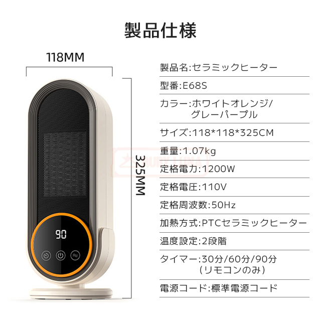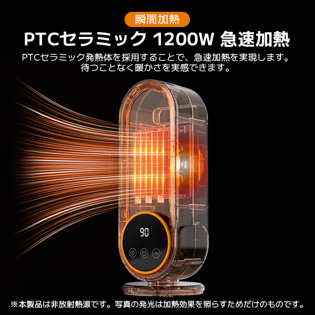 | 【3秒速暖・小型ながらパワフル】 | ◆小さいのに最大1200Wのハイパワー速暖セラミックファンヒーターです。電熱転換率ですぐに温風が出ます。 |