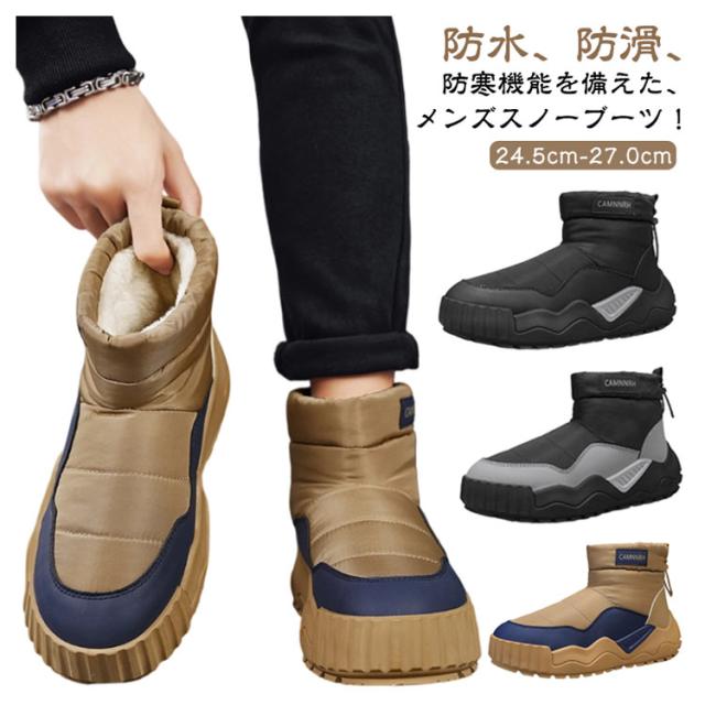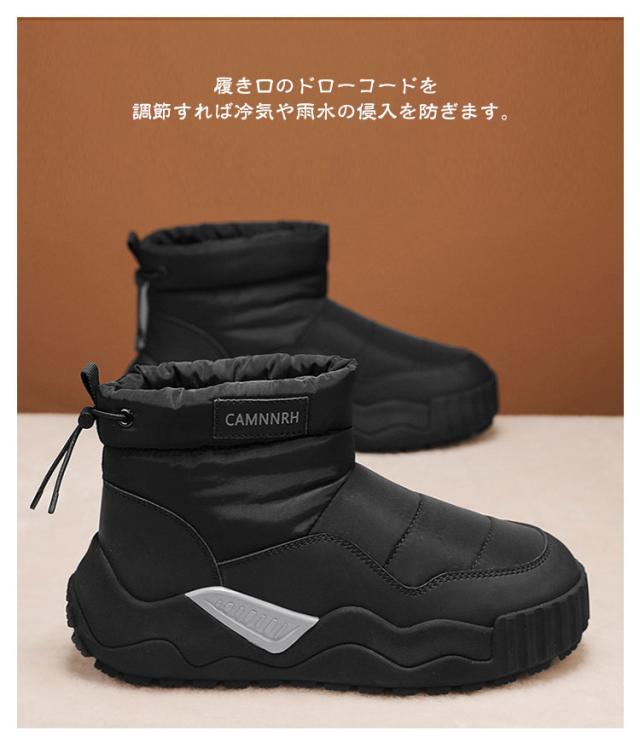 スノーブーツ 防水 防滑 ウィンターブーツ メンズ 防寒ブーツ スノーシューズ ドローコード付き 裏起毛 防寒 保温 撥水 滑らない 冬靴 防寒靴 雪靴 アウトドア 内ボア 暖かい中敷き メンズブーツ おしゃれ 釣り 登山 キャンプ 雪 通学 通勤 ボアブーツ ショートブーツ
