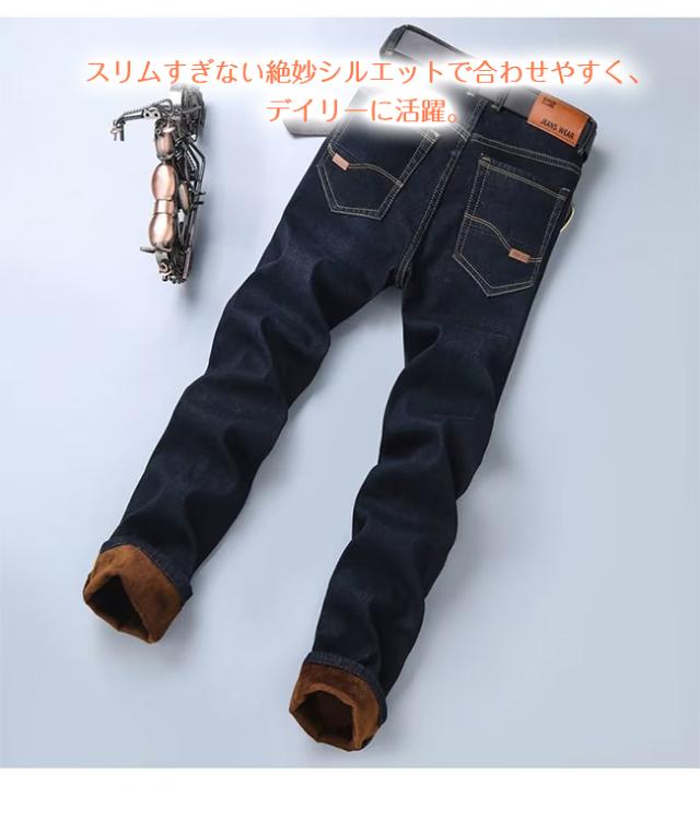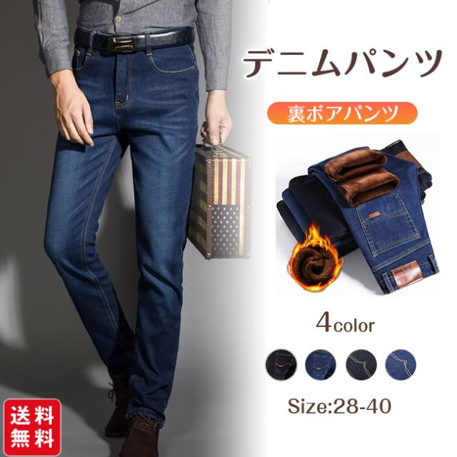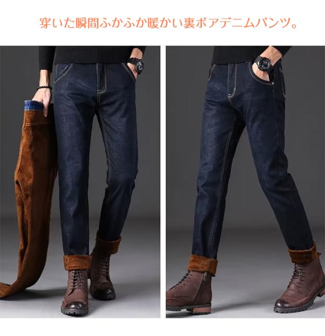 【限定クーポン 100 円 OFF】新作 デニムパンツ メンズ 裏起毛 裏ボア 厚手 ジーンズ ジーパン ロングパンツ ボトムス ストレッチ ボトムス あったかい 防寒 秋冬 ビジネス 大人