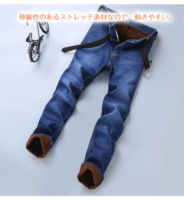 ★デニムパンツ メンズ 裏起毛 裏ボア 厚手 ジーンズ ジーパン ロングパンツ ボトムス ストレッチ ボトムス あったかい 防寒 秋冬 ビジネス 大人★