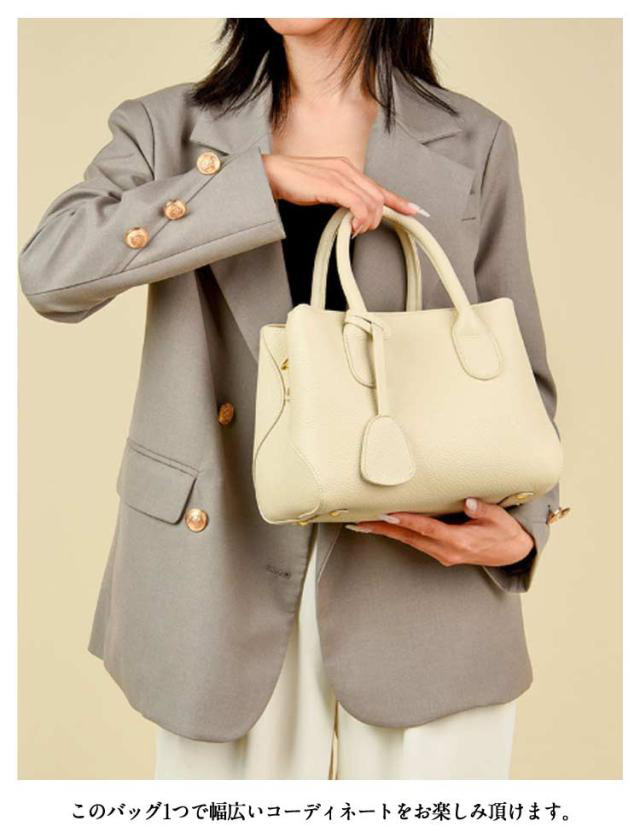 | セレモニーにも使えるシンプルな本牛革ハンドバッグ。 ワンカラーのシックなデザインに存在感のあるダブルハンドルが特徴。 本体と同じ本革を使用したロングショルダー付きでショルダーバッグにもなる2WAY仕様。 シボ加工が施された牛革は、上品ながらも可愛らしさを演出します。 マチが広く、小さく見えてしっかり収納可能。 マグネットで口が開きやすく、荷物の出し入れがしやすいお作りになっています。 このバッグ1つで幅広いコーディネートをお楽しみ頂けます。 フォーマルバッグにも!おすすめ●入学式(入園式)、卒業式(卒園式)、演奏会、発表会、学校行事、参観、セレモニー、2次会(二次会)、お呼ばれ、女子会、食事会、成人式、同窓会、謝恩会、誕生日会、七五三、お宮参り、パーティー、デート | |