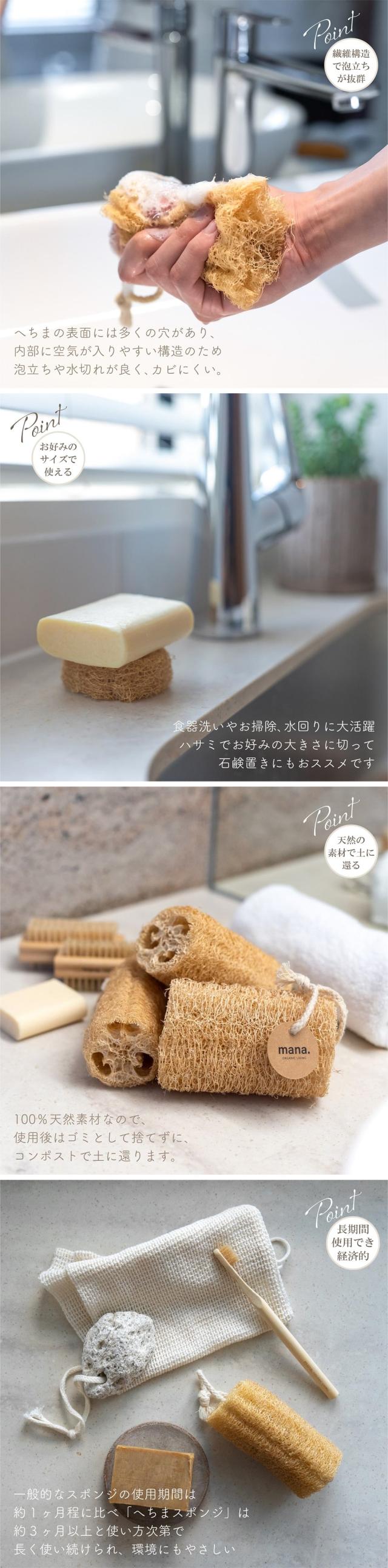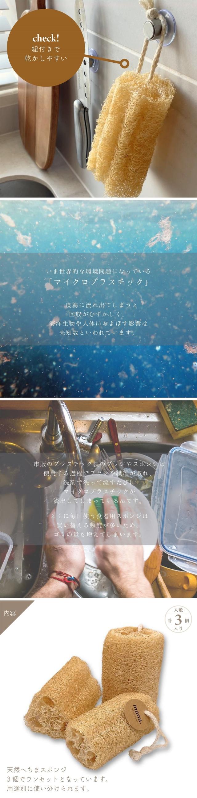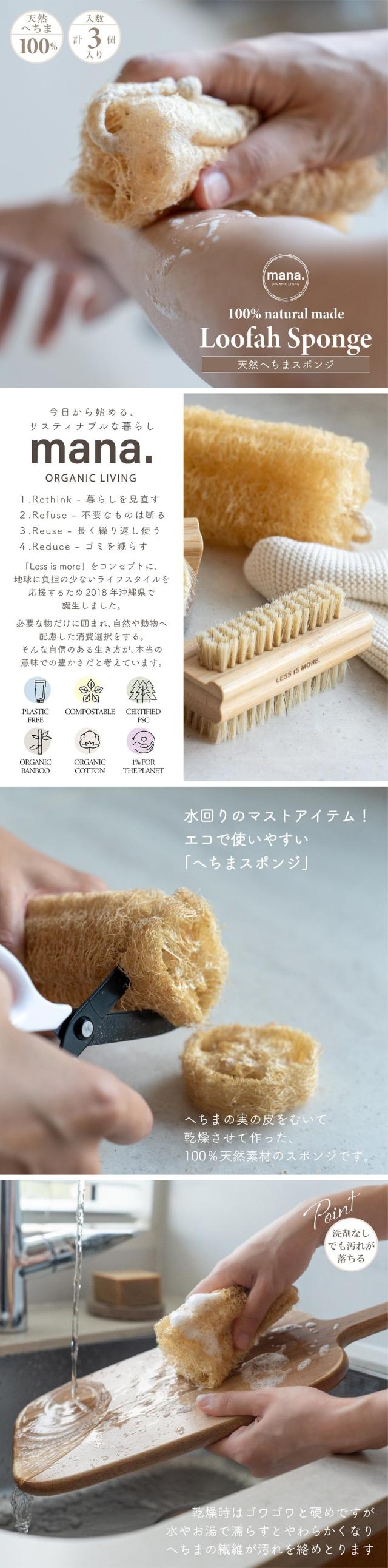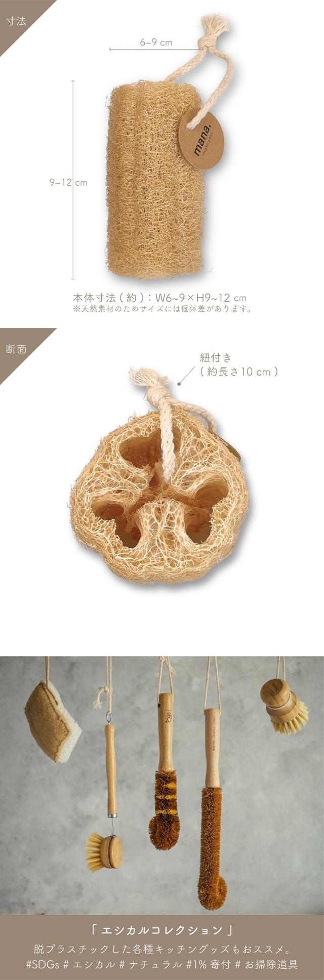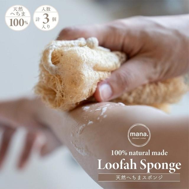 万能スポンジ mana. 天然へちまスポンジ 3個入り 切って使える ボディスポンジ キッチンスポンジ 天然素材100% 食器洗い お掃除 ボディケア 石けん置き ソープディッシュ ナチュラル エシカル 脱プラスチック サスティナブル SDGs
