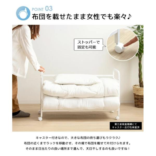 キャスター付きで移動も簡単、布団の上げ下げや持ち運びも楽々。