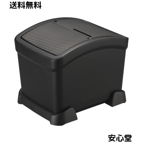 「おもり付き」より倒れない しっかり踏ん張るゴミ箱 転倒・横滑りを防ぐサポーター付きゴミ箱 カーボン調デザインのフタとブラックフレーム