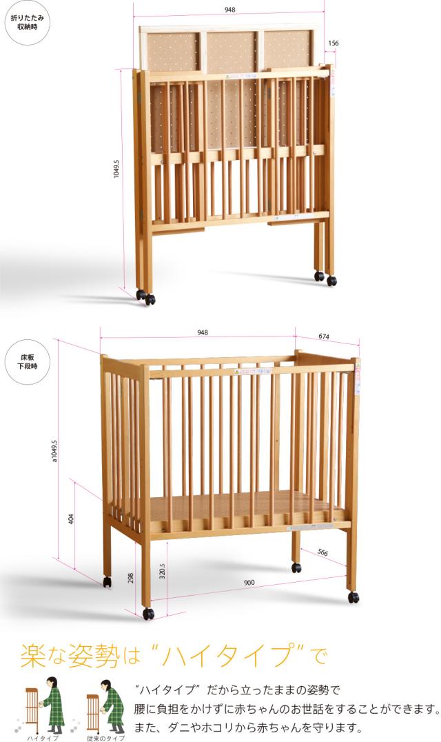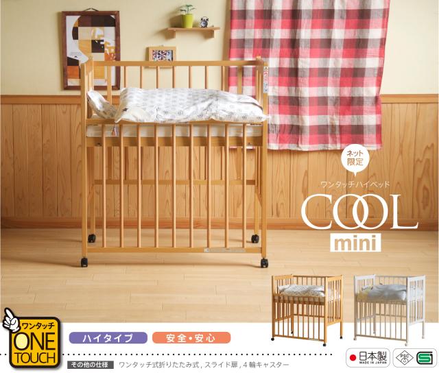 日本製 ベビーベッド「ワンタッチハイベッド クールミニ」 折りたたみ ミニサイズ ネット限定 石崎家具