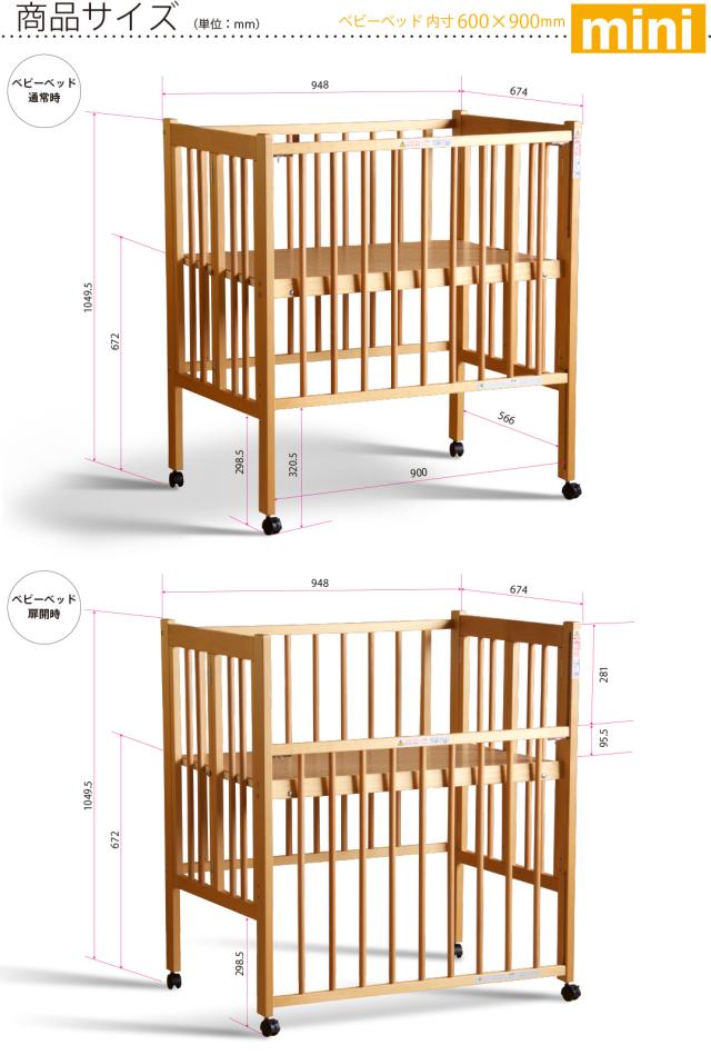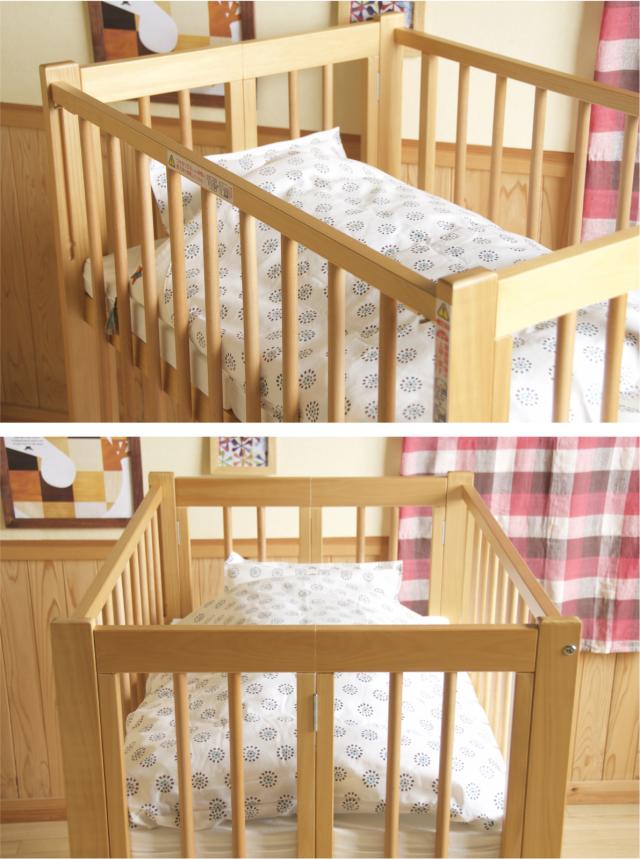 | 特 徴 | ・ワンタッチ折りたたみ式 ・扉スライド式 ・4輪キャスター付 ・床板2段階調節可能(床から672、404mm) ・耐荷重 ベッド:静止状態で60kg (生後24ヶ月以内の乳幼児が対象です。同時に二人で使用したり、腰掛けたり、ぶら下がったりしないでください。) ・生産国:日本 |