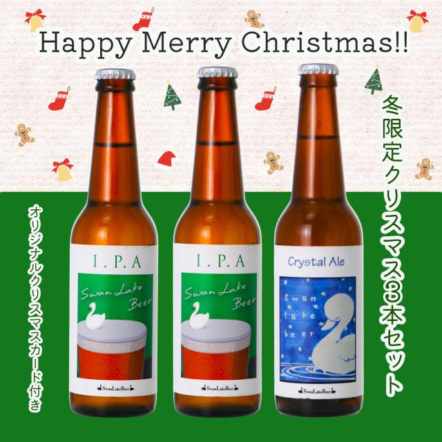 ビール クリスマスギフト クラフトビール 季節限定ビール入りギフト クリスマスカード付き スワンレイクビール 3本 詰め合わせ 本州 送料無料