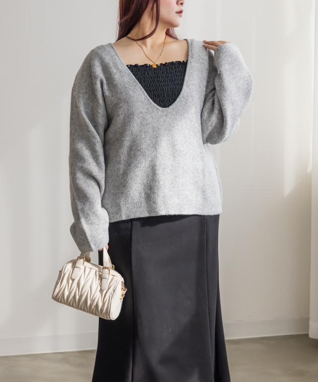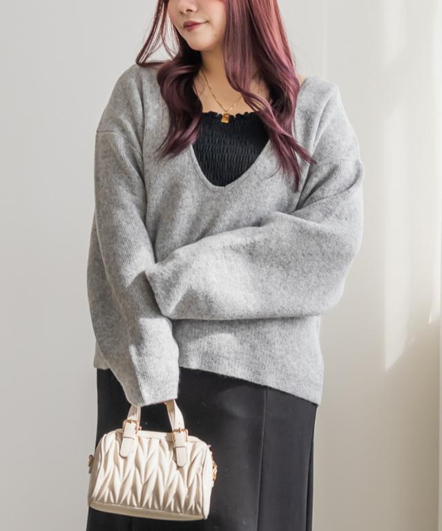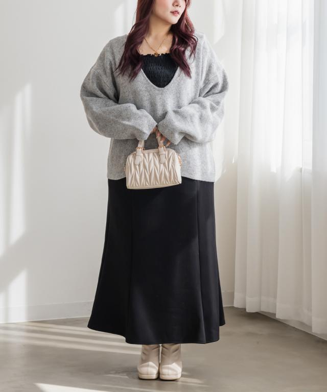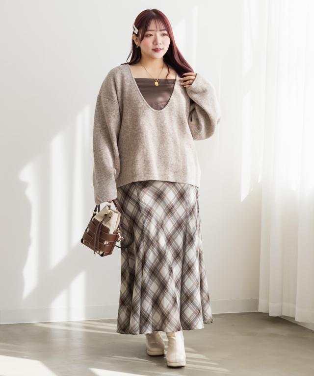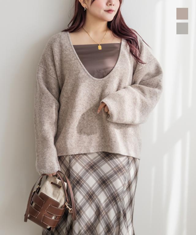 大きいサイズ/レディース/3L/4L/Uネックオーバーサイズニットプルオーバー