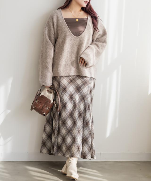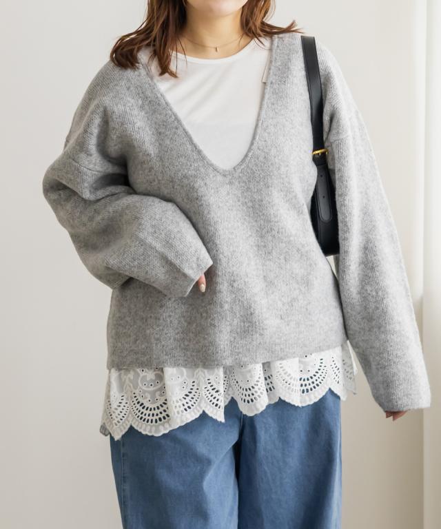 | 3Lサイズを着て、ゆったりとしたオーバーサイズのシルエットで、体のラインを拾わずに着られるところがお気に入りです♪ 首元はUネックで抜け感がありつつ、大人カジュアルでお洒落な印象です◎ お尻まですっぽり隠れる丈感だから、細身のボトム合わせもバランスよく楽しめました! こなれた印象になるので、1枚持っていると着回しに大活躍してくれるニットです! |