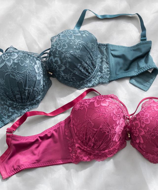 裏地無し、透け感有り、伸縮性有り 【カップタイプ】3/4カップ・モールドカップ(丸みを形成した厚みのあるカップです)、【ホックの数】3段3列、【パット付属】なし、【パットポケット】なし、【ストラップ取外し】不可、【ワイヤー】あり、※タンブル乾燥禁止