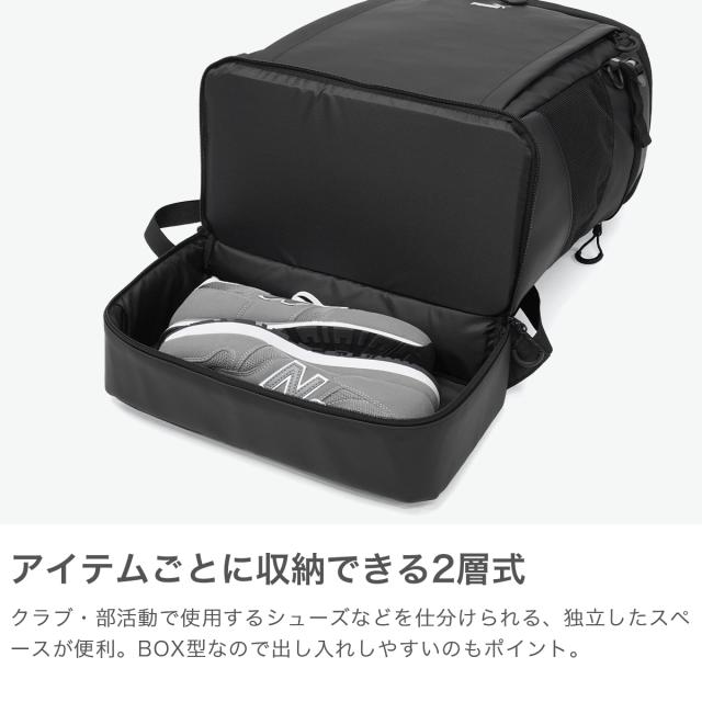 本体には撥水加工が施された2種類のPUを使い分け、実用性を高めるとともにデザイン性もアップ。40Lの大容量サイズで、さらに底部には独立した収納スペースを設けることで、分けておきたい荷物やシューズなどの収納にも便利な構造となっています。バッグ内部にはPC収納を装備し、学校生活を快適にサポートするアイテムです。