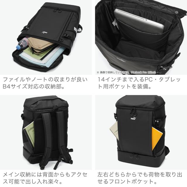 プーマ リュック PUMA メンズ レディース 大容量 通学 スクールリュック リュックサック ブランド おしゃれ 軽量 軽い PC収納 ボックス型 スクエア型 ブラック 撥水 B4 40L ヘリオス デイパック カジュアル 黒 B4サイズ 40リットル 14インチ 14inch タブレット タブレット収納 ヘリオスシリーズ バックパック 大きめ 大きい ロゴ シンプル かっこいい バッグ ボックスリュック ボックス BOX BOX型 スクエアリュック スクエア 背負い ノートPC オシャレ お洒落 スポーティー はっ水 撥水加工 無地 ワンポイント 旅行 トラベル デイリー 普段使い 日常使い 学校 スクール 通学用 通勤用 通勤リュック 通勤バッグ 学生 中学生 高校生 大学生 男子 女子 部活 ファスナー A4サイズ収納可能 PU スポーティ オールシーズン