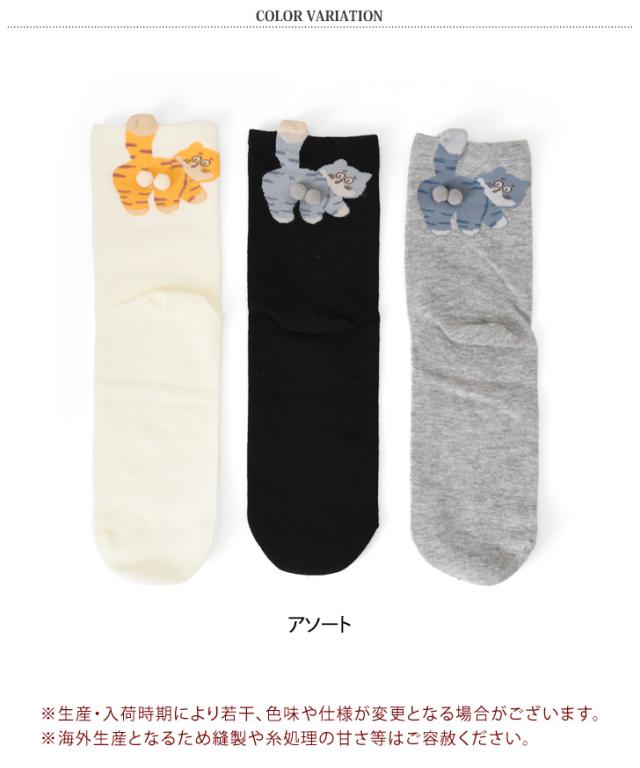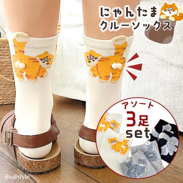 アソート3足セット!にゃんたまクルーソックス
