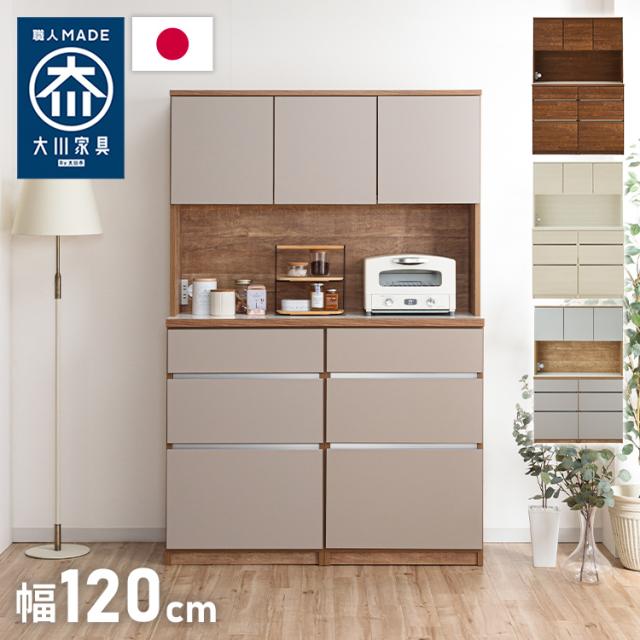 食器棚 キッチン収納 幅120cm 高さ180cm 奥行45cm 開梱設置付き ハイタイプ 大容量 国産 完成品 大川家具 日本製 キッチンボード 収納 ホワイト ブラウン 木目 ダイニング フルオープンレール 北欧(代引不可)【送料無料】