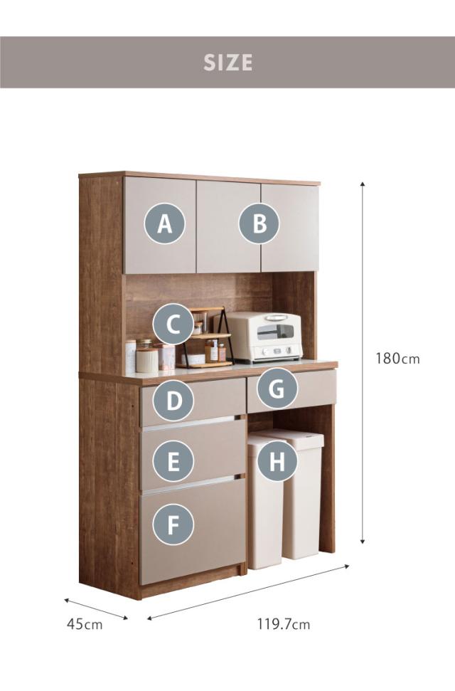 食器棚 キッチン収納 幅120cm 高さ180cm 奥行45cm 開梱設置付き ハイタイプ 大容量 国産 完成品 大川家具 日本製 キッチンボード ダスト収納 ホワイト ブラウン ダイニング フルオープンレール 北欧(代引不可)【送料無料】