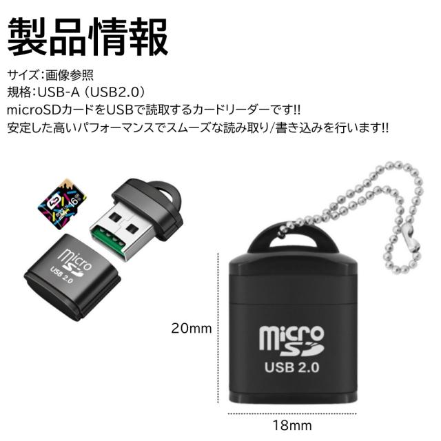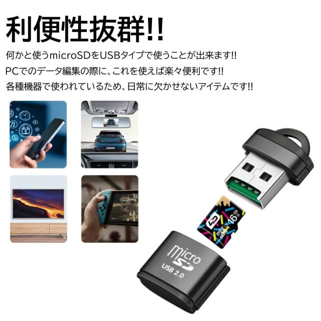 マイクロSD カードリーダー ミニタイプ 高速 USB2.0 microSD USB-A デスクトップ ラップトップ ノートPC マイクロSDメモリーカード