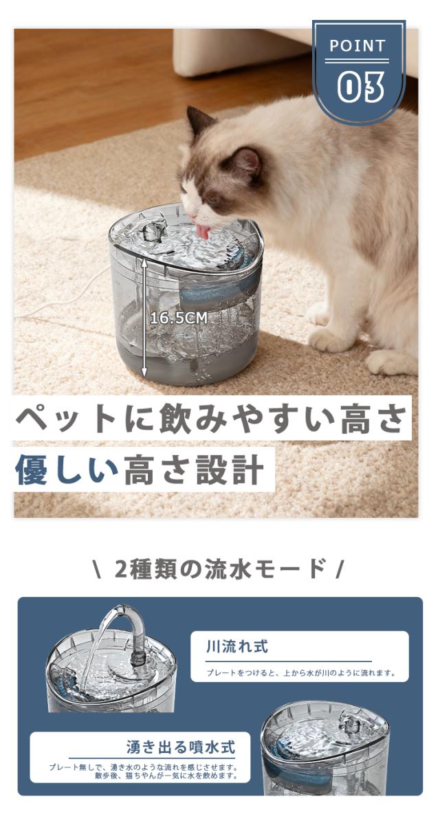 ■静音設計で夜間も気にならず、フィルターが不純物をしっかり除去。透明デザインで水量がひと目で分かる、おしゃれで機能的な自動給水器。