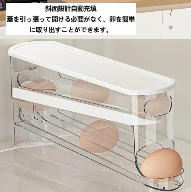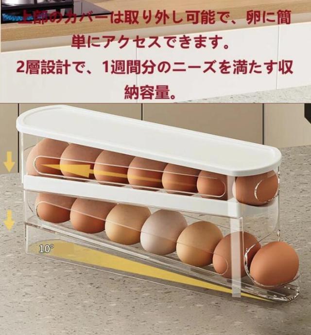 卵入れ 卵収納ボックス 自動ローリング 卵 12枚 2段エッグラック 卵ケース 冷蔵庫用 卵 オーガナイザー たまご 収納ケース 省スペース 卵ディスペンサートレイ キッチン 卵の容器 取り出し便利 たまご収納 フタ付き たまご収納棚 重ね置き
