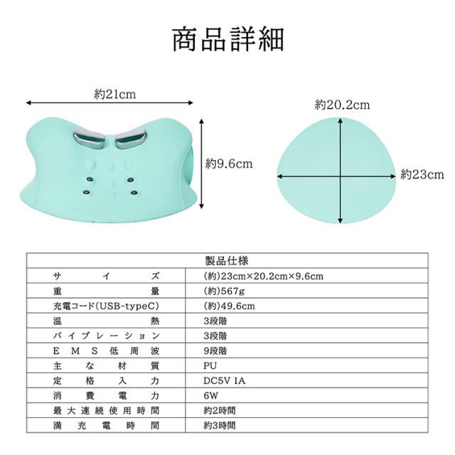 頸椎サポート 枕 リモコン付き ピロー 枕 温熱 バイブレーション EMS低周波 EMS搭載 加熱調整可能 振動調節可能 リモコン付き 充電式 USB typeC 磁気ビーズ ウェイブ設計 コードレス 隙間時間 ナイトタイム cc064