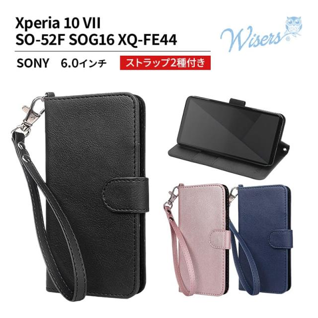 wisers Xperia 10 VII SO-52F SOG16 XQ-FE44 ケース 手帳型 スマホケース 対応 (全3色) ( カードホルダー / スタンド機能付き ) ストラップ 2種付き ( ハンドストラップ / ネックストラップ )