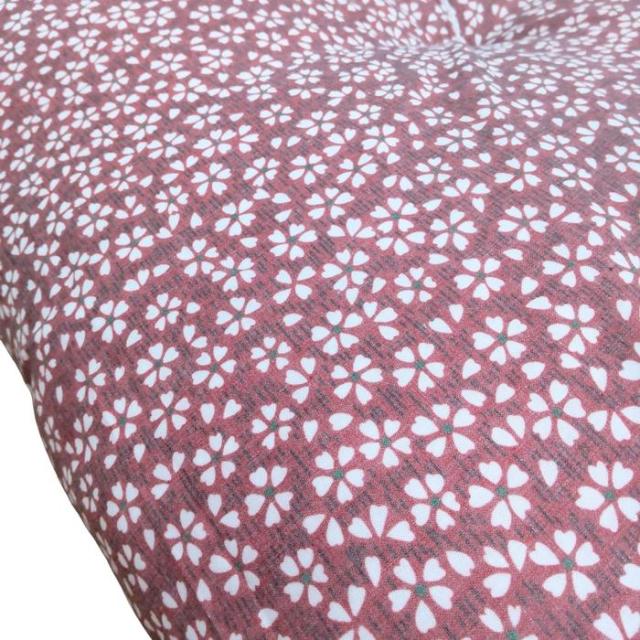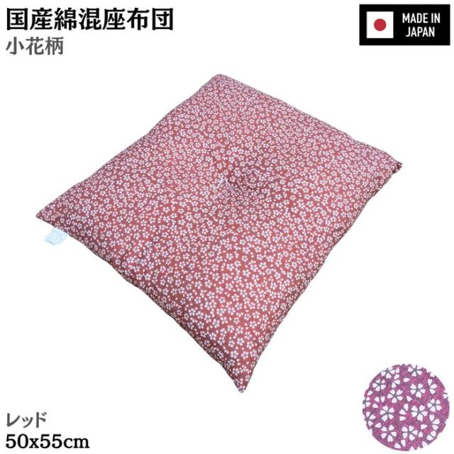 国産綿混座布団 銘仙判 小花柄 レッド 約50x55x10cm 綿混プリント生地 クッション 国内わた入れ加工 日本製
