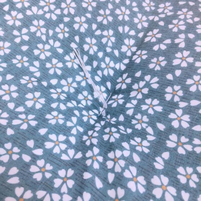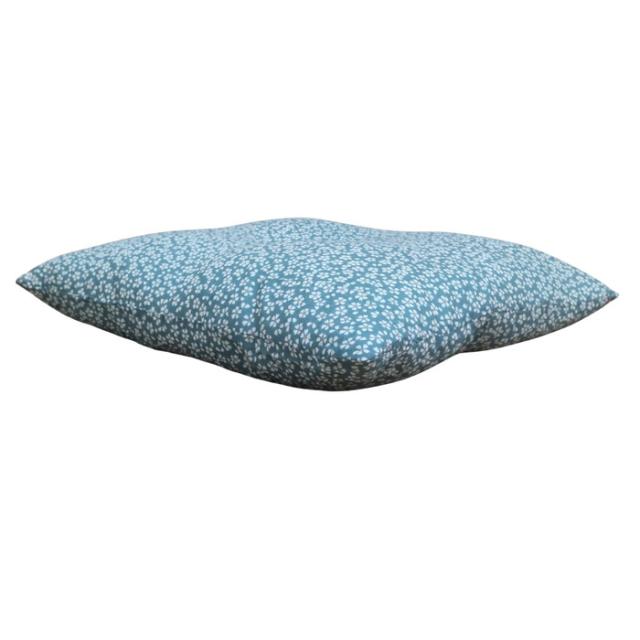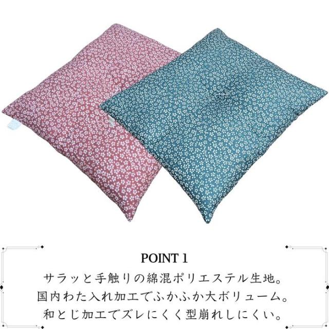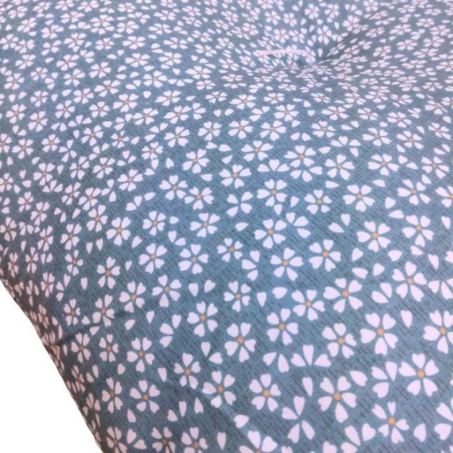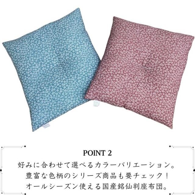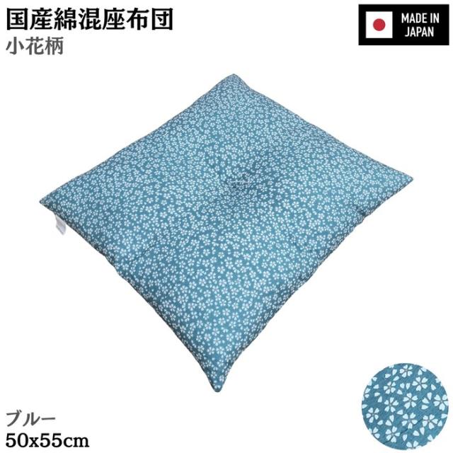 国産綿混座布団 銘仙判 小花柄 ブルー 約50x55x10cm 綿混プリント生地 クッション 国内わた入れ加工 日本製